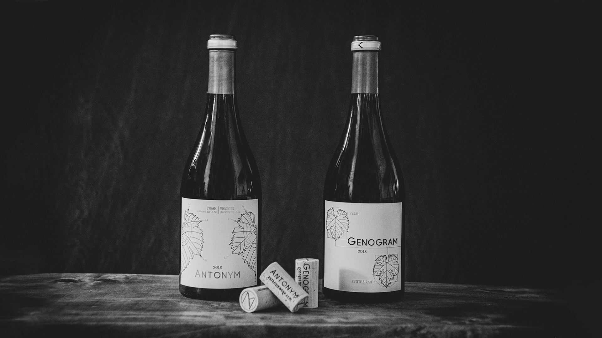 For this project I worked in close collaboration with the owner Yannis Toutountzis to refine the existing label for “Antonym” and design a new one for “Genogram”. With his background in Enology and Plant Sciences, Yannis had a clear idea that he wanted actual leaf structures and symbols/ codes used in the science of ampelography. For “Genogram” we knew we wanted to show that the two varieties the wine is made from are related. The Petite Sirah is the result of crossing Syrah with Pelousin - thus the name “Genogram the label is inspired by. The intriguing part was how to do it on a wine label without losing the essence of a wine label. And although we wouldn’t expect the average wine lover to try too hard to understand the content, the result is intriguing to the eye, with subtle elements of class and some mystique, which is what we were aiming for.